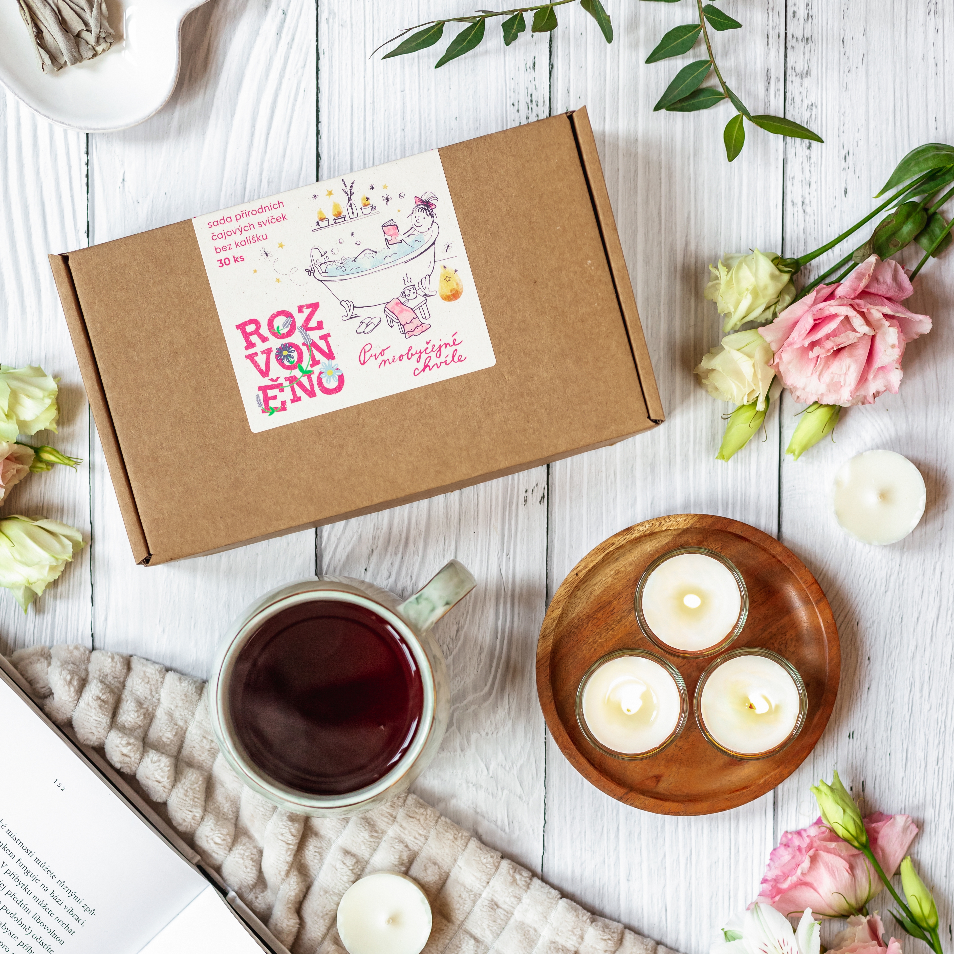Čajové svíčky jsou vyrobeny z přírodního sójového vosku. Do svíček není přidaný žádný éterický olej – jsou bez aromatizace.