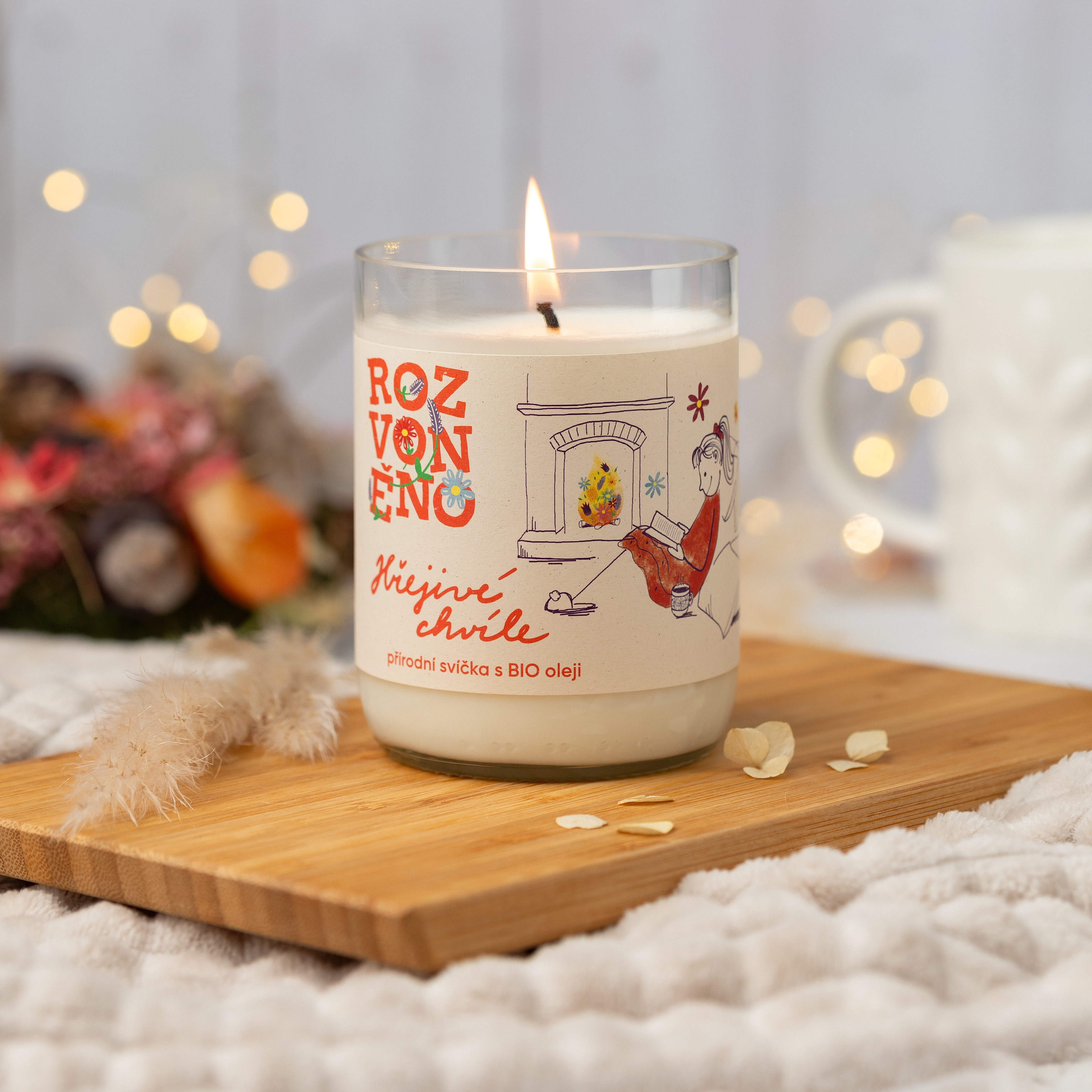 Zveme vás k odpočinku, zpomalení a vychutnání si drobných radostí. Užijte si zvuk praskajícího ohně, šálek horkého čaje v rukou a hřejivou vůni přírodní svíčky.
