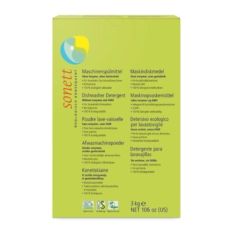 V případě zabudovaného elektronického změkčovače vody, není vhodné používat Sonett ekologické mycí prostředky.