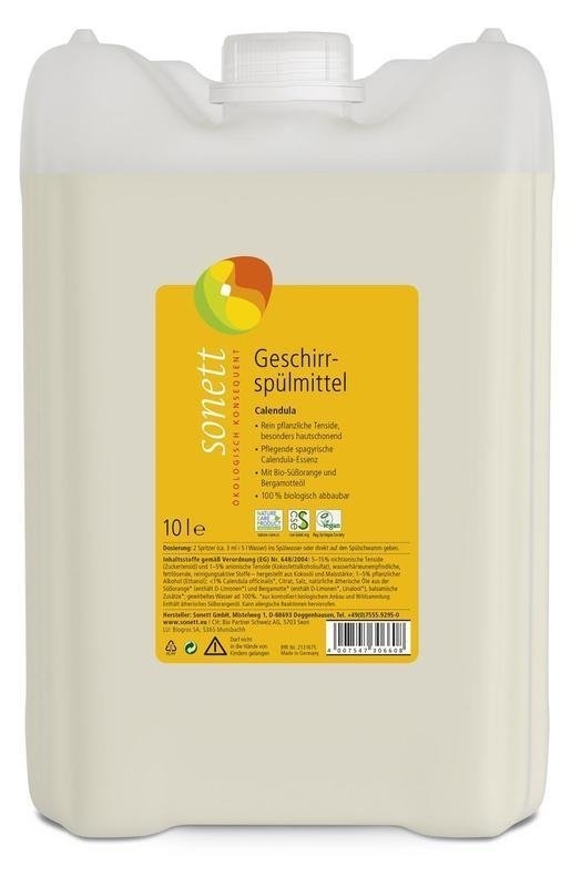 ruční mytí nádobí s pečující a vonící esencí z měsíčku a pomeranče v BIO kvalitě. Snadno