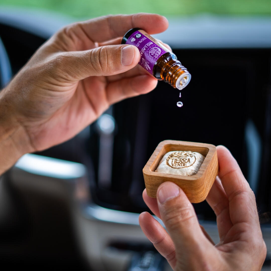 Unikátní difuzér z houbového mycelia a lokálních odpadních surovin (piliny). Výborně absorbuje vůně rostlinných esenciálních olejů a poté je uvolňuje do interiéru vozu.