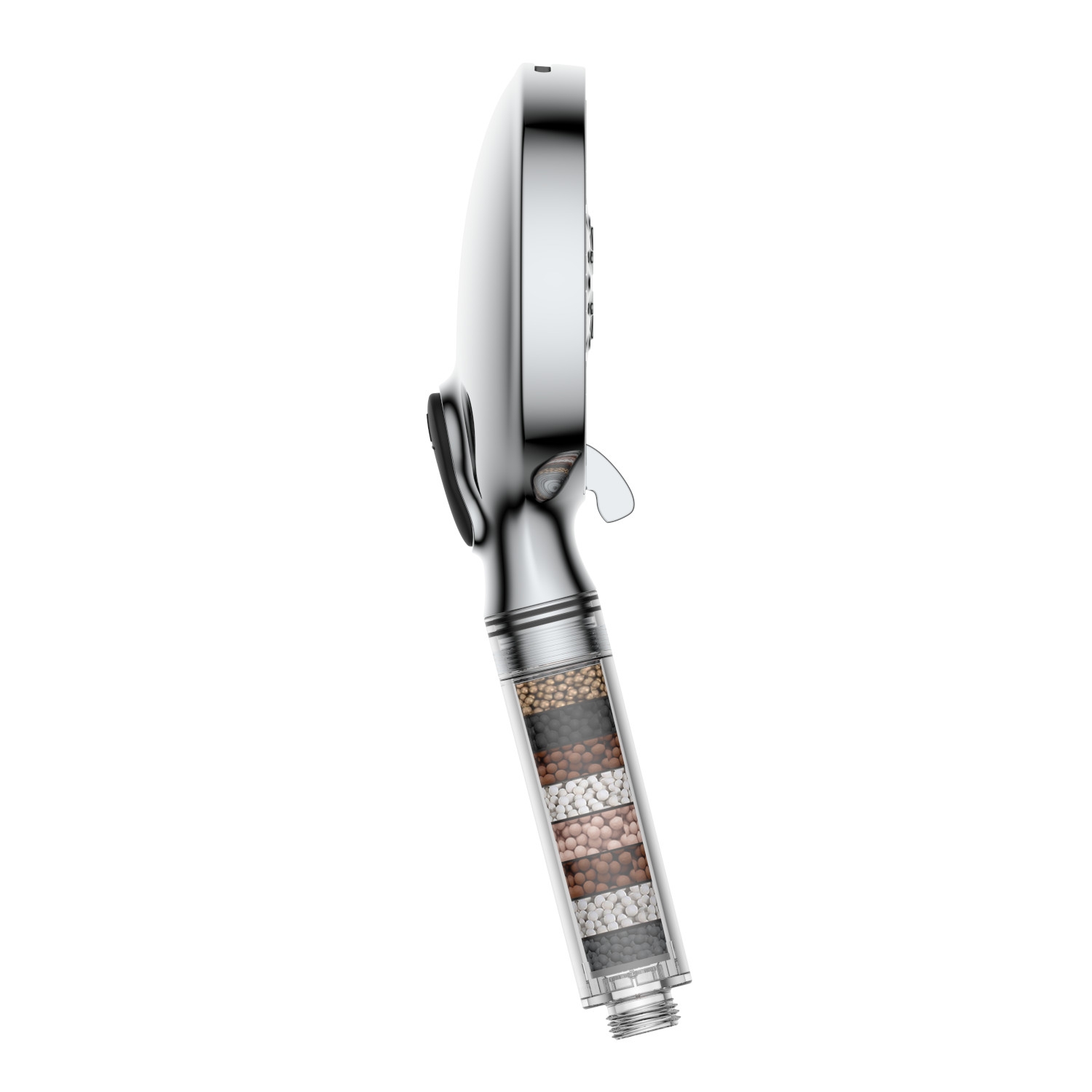 - Obohacena o 7 stupňový vyměnitelný filtrační systém, který je umístěn v rukujeti sprchy