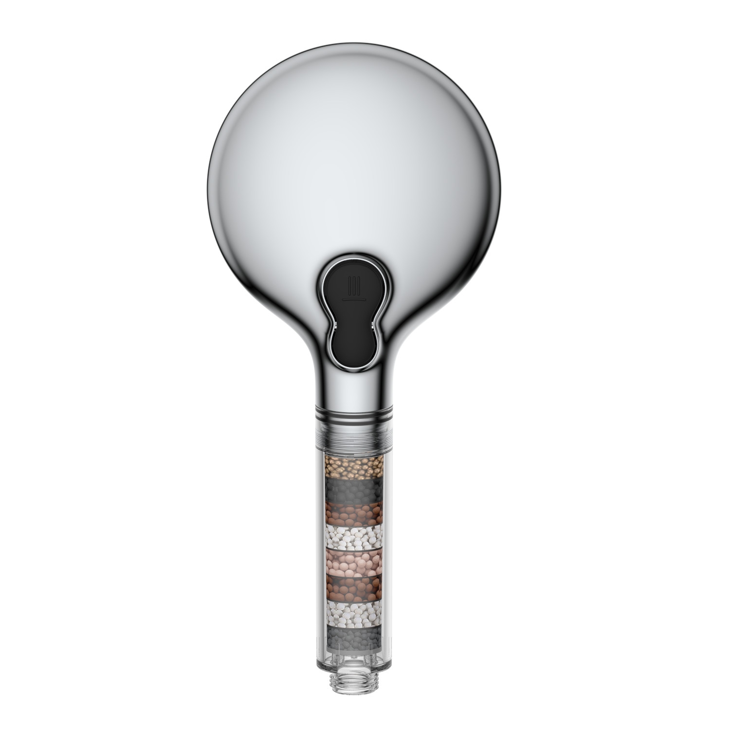 Kuličky se zápornými ionty tvoří Turmalín, který vytváří záporné ionty a infračervené záření, mírně alkalizuje vodu zvýšením pH, mění strukturu vody a dělá ji jemnější, má slabý antibakteriální účinek. Podporují účinnost ostatních filtračních vrstev. Přispívájí k udržení kožní bariéry a udržuje pokožku hebkou.