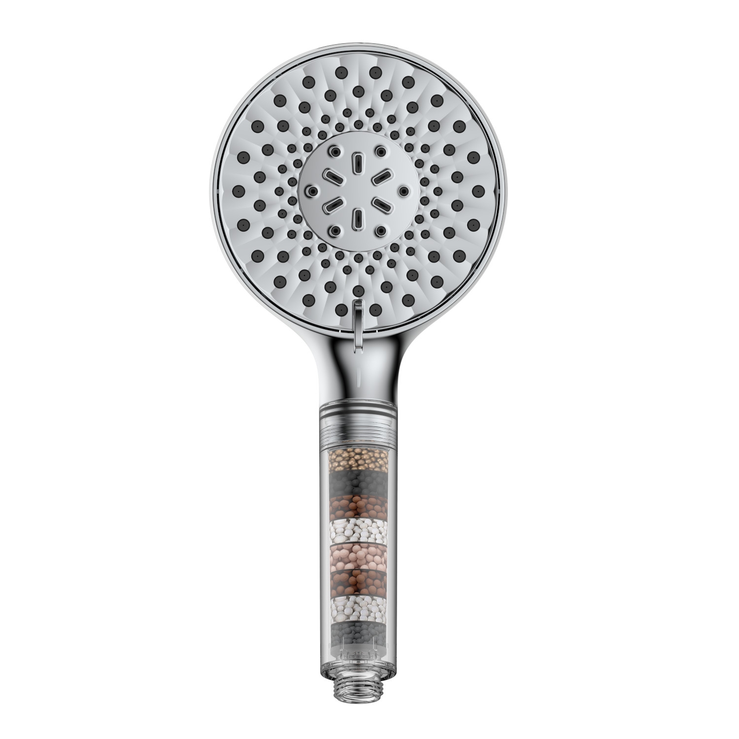 je obohacena o 7 stupňový vyměnitelný filtrační systém, který je umístěn v rukujeti sprchy.