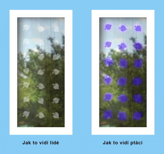 Tyto české samolepky využívají schopnost ptáků pozorovat (na rozdíl od nás lidí) ultrafialové (UV) světlo.