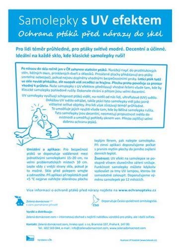 Tyto české samolepky využívají schopnost ptáků pozorovat (na rozdíl od nás lidí) ultrafialové (UV) světlo. Statická varianta samolepek bez lepidla dobře drží, ale samolepky jdou snáze v případě potřeby odstranit.