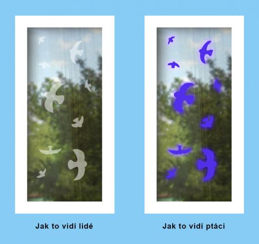 Tyto české samolepky využívají schopnost ptáků pozorovat (na rozdíl od nás lidí) ultrafialové (UV) světlo.
