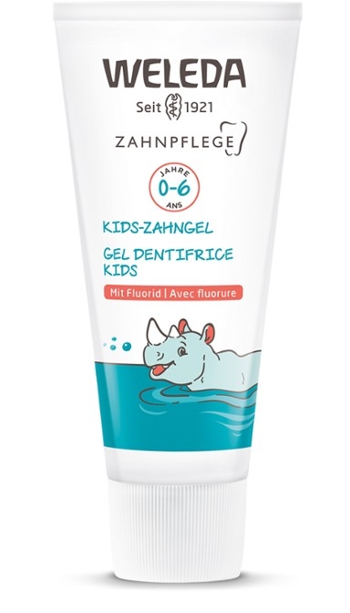 Použijte množství zubního gelu o velikosti hrášku. • Od 6. narozenin používejte Junior zubní gel značky Weleda s 1450 ppm fluoridu. Aby nedošlo k nadměrnému požití, dohlížejte na děti při čištění zubů. Pokud navíc konzumujete fluor, poraďte se se svým zubařem nebo lékařem.