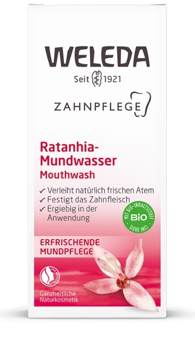 Do sklenice s vlažnou vodou stříkneme několik kapek Ratanhové ústní vody Weleda tak, aby vznikl světle růžový roztok. Připravenou tekutinou si několikrát vypláchneme ústa, případně vykloktáme. Pozor! Výtažek z kořene ratanhy má intenzivně červenou barvu, kterou nelze odstranit z tkanin, může zabarvit i plast.