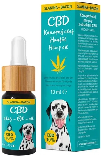 CBD kapky 10% pro psy příchuť slanina. S obsahem 970 mg CBD, veterinární přípravek. Pomáhají při léčbě epilepsie, alergie, bolesti, úzkosti. Balení 10 ml cca 250 kapek.